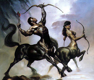 El centauro es un ser fabuloso originario de la mitología griega. Aunque en las primeras narraciones se los describe como una raza de gigantes, absolutamente cubiertos de pelos, habitaban la región de Tesalia y vivían rudamente. Muy salvajes se dedicaban a recorrer el país mientras raptaban mujeres. Pero más tardíamente otros textos comienzan a difundir la imagen que ha trascendido hasta la actualidad: un híbrido, mitad hombre y mitad caballo.